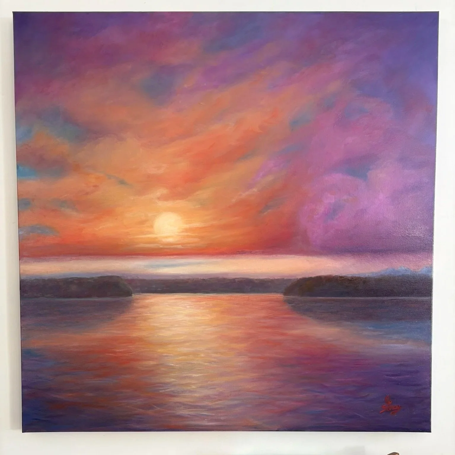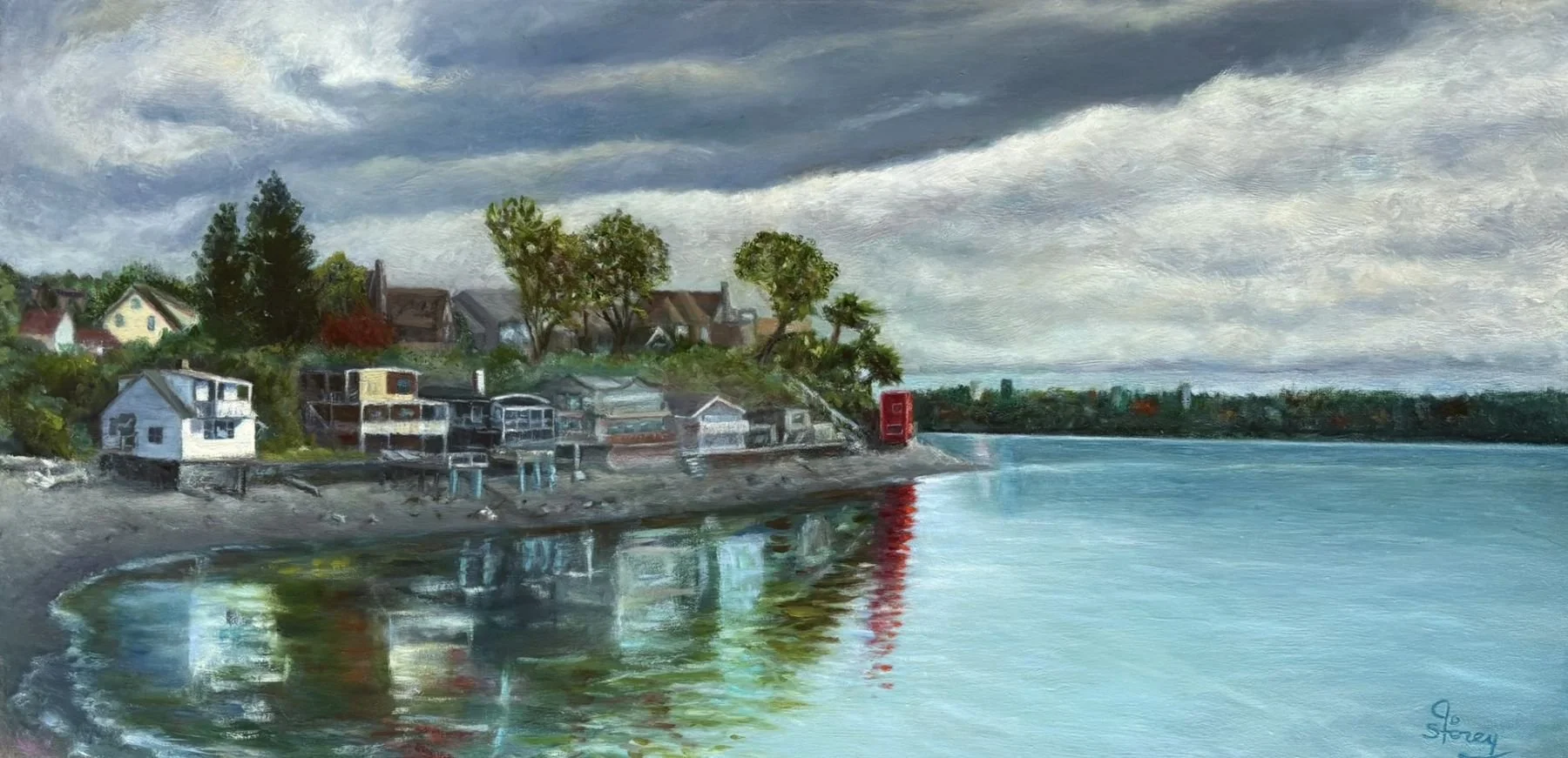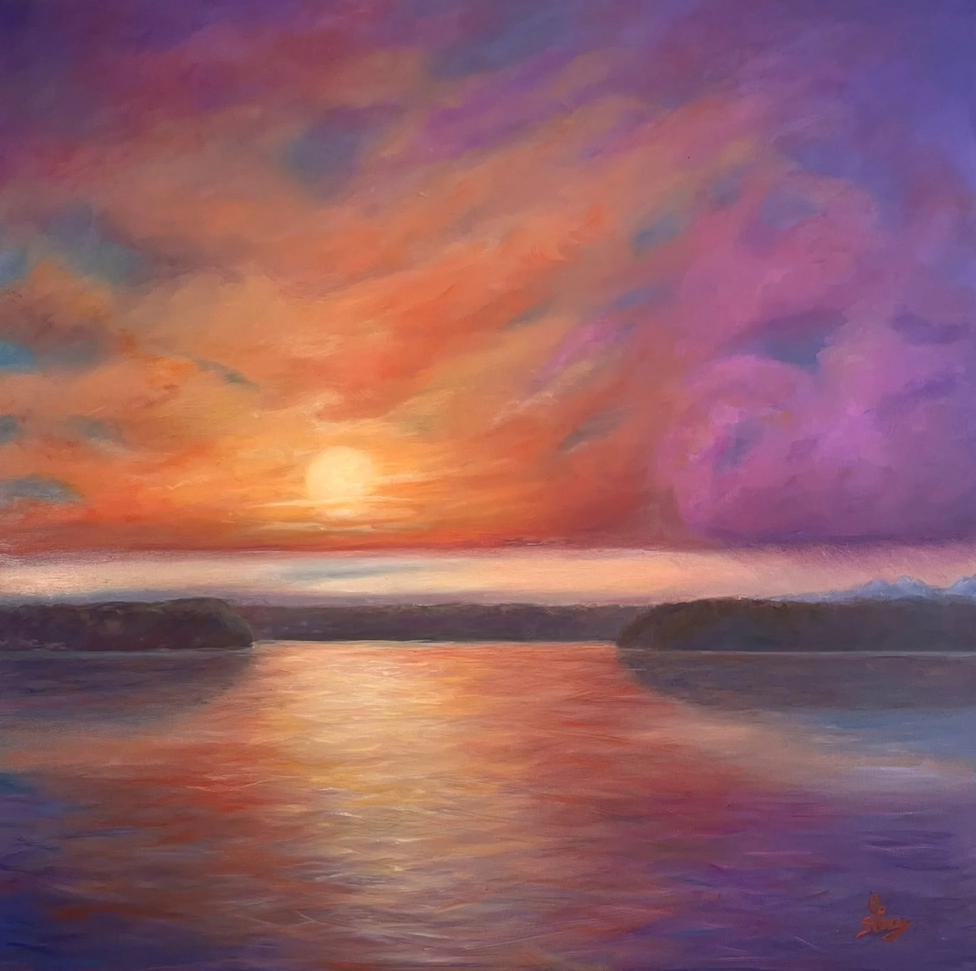 I painted this outdoors last fall while standing on a Dash Point hillside overlooking the straights leading into Commencement Bay . I loved the Fall treetop vista of the old Sugar Maple as it overlooks Vashon and Murray Island, Washington.